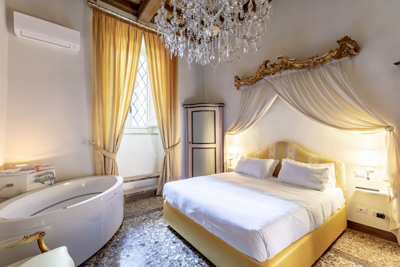 Enter a world of original Italian frescoes, painted by grandmasters; of palatial terrazzo floors and stately golden drapery. Make no mistake: this property is a means of immersing yourself in the pomp and ceremony of renaissance Rome.