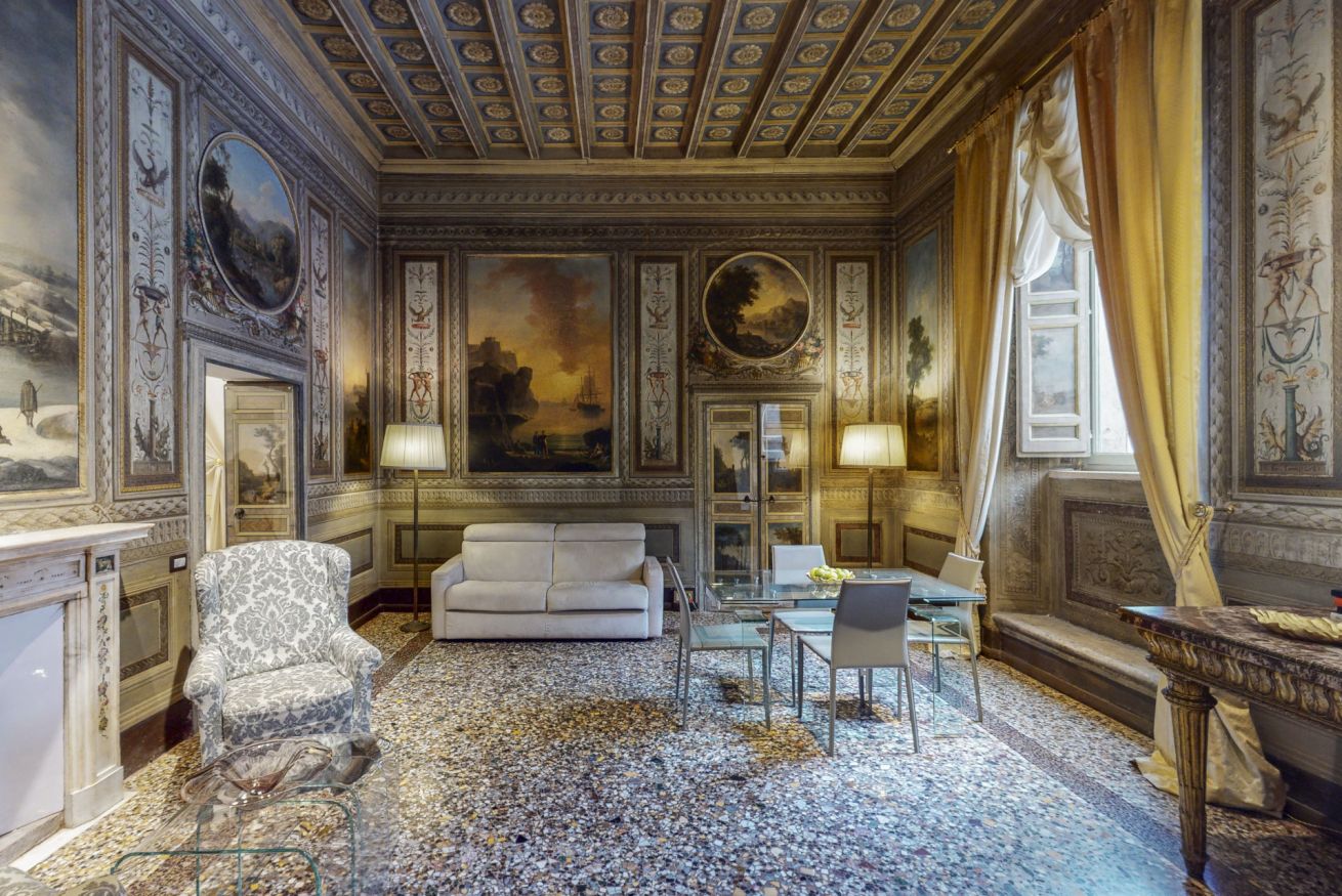 When nothing short of outright opulence will do. This isn’t just a luxurious one-bed apartment; it’s a full-on royal Roman time-travelling experience, hidden away in the principal seat of the historic Borghese family.